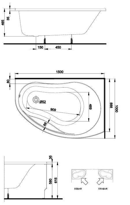 ВАННА АКРИЛОВАЯ KOLO PROMISE 150X100 ЛЕВАЯ с ножкамиБЫВАЕТ ПРАВАЯ И ЛЕВАЯ